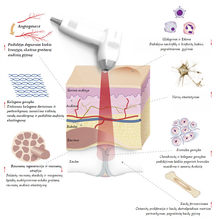 Šios procedūros metu skirtingi bangos ilgiai ir žemo lygio šviesa yra tiesiogiai nukreipiami į tikslinę sritį. Tada kūno audinys sugeria šviesą. Raudona ir artima infraraudonoji šviesa sukelia reakciją, o pažeistos ląstelės reaguoja fiziologine reakcija, skatinančia regeneraciją. Nors pajusite, kaip lazerinis prietaisas liečia jūsų odą, procedūra yra neskausminga ir neinvazinė. Kiekvienas gydymo seansas paprastai trunka nuo 4 iki 10 minučių.