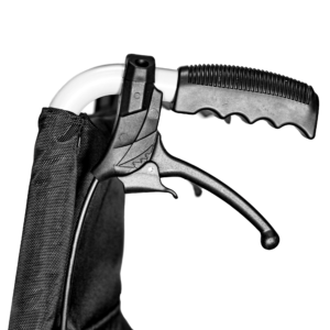 Vežimėlio porankiai (aukštis su pasėstu – 21,5 cm) yra pakeliami. Rekomenduojame juos pakelti sėdantis į/iš vežimėlio iš šono. Važinėjant porankiai turi būti fiksuoti.
