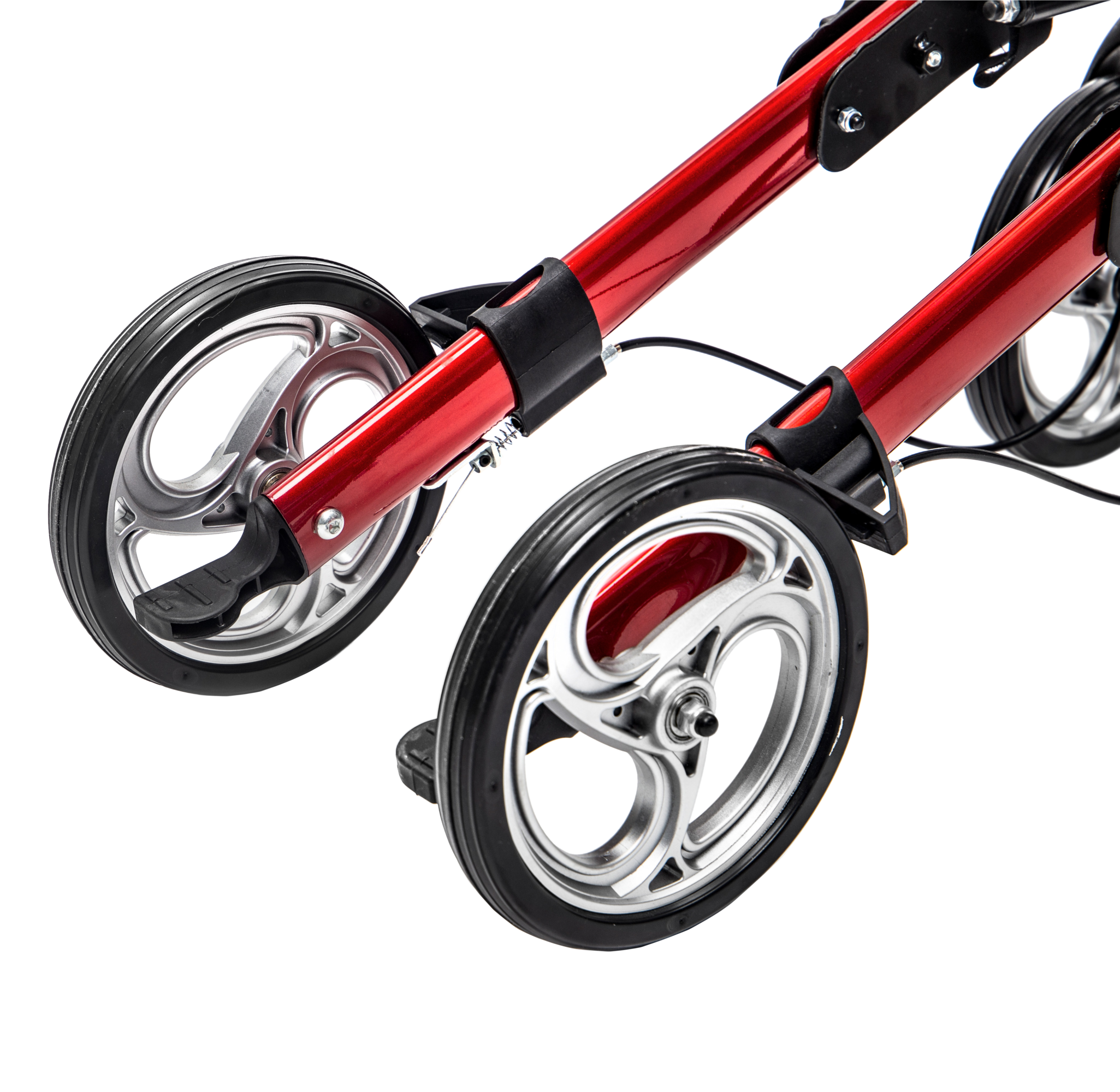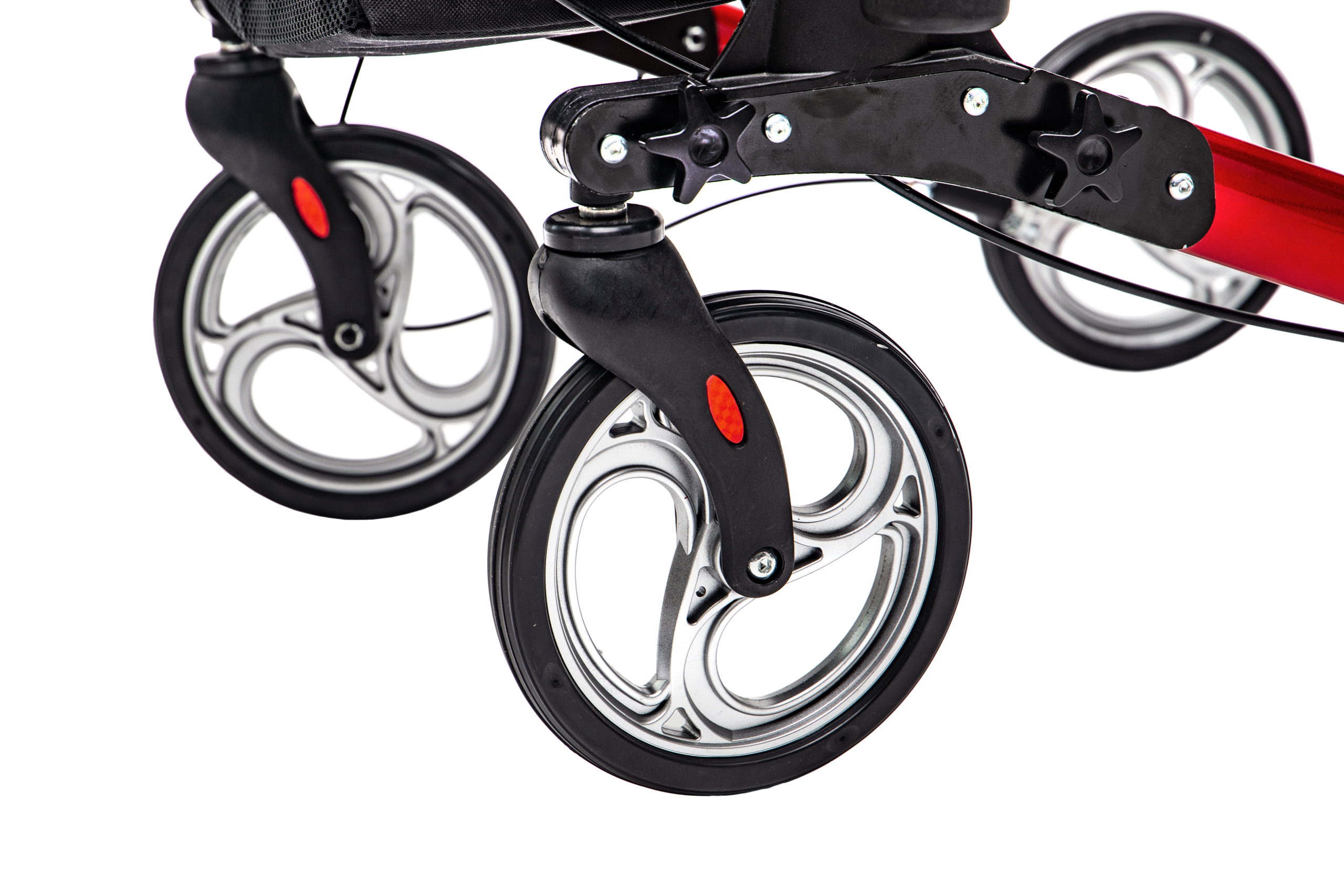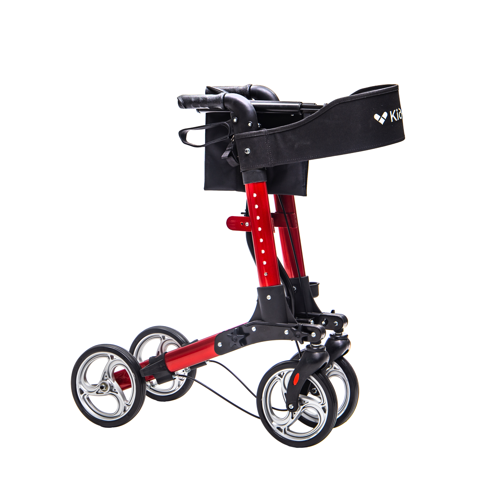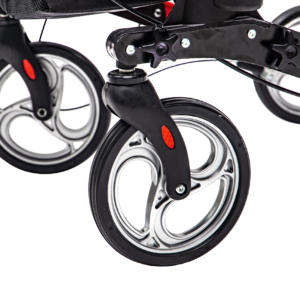 Tvirta konstrukcija užtikrina stabilumą, o keturi ratai leidžia lengvai judėti įvairiais paviršiais. Integruoti stabdžiai leidžia saugiai sustoti ir užfiksuoti vaikštynę prieš atsisėdant.