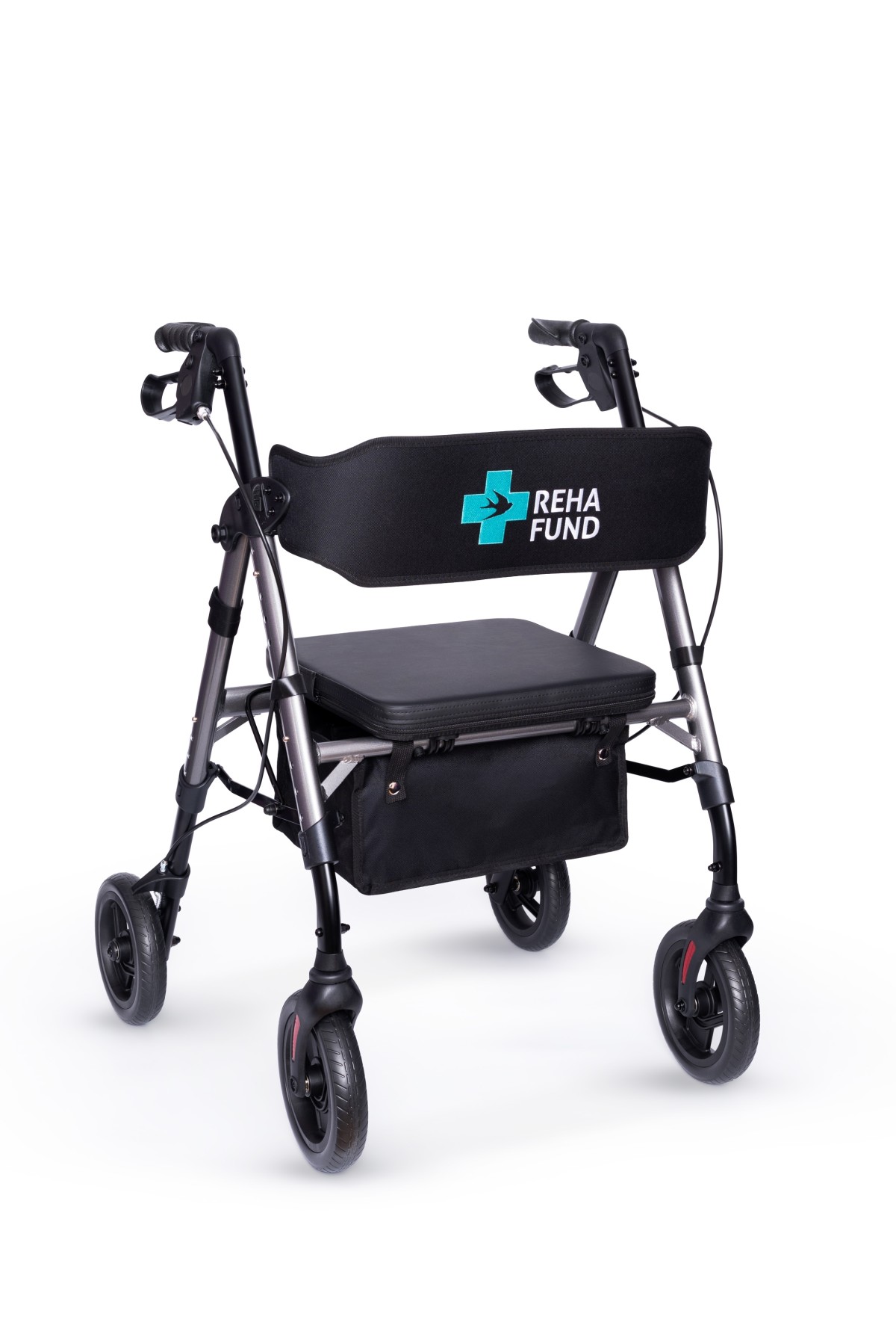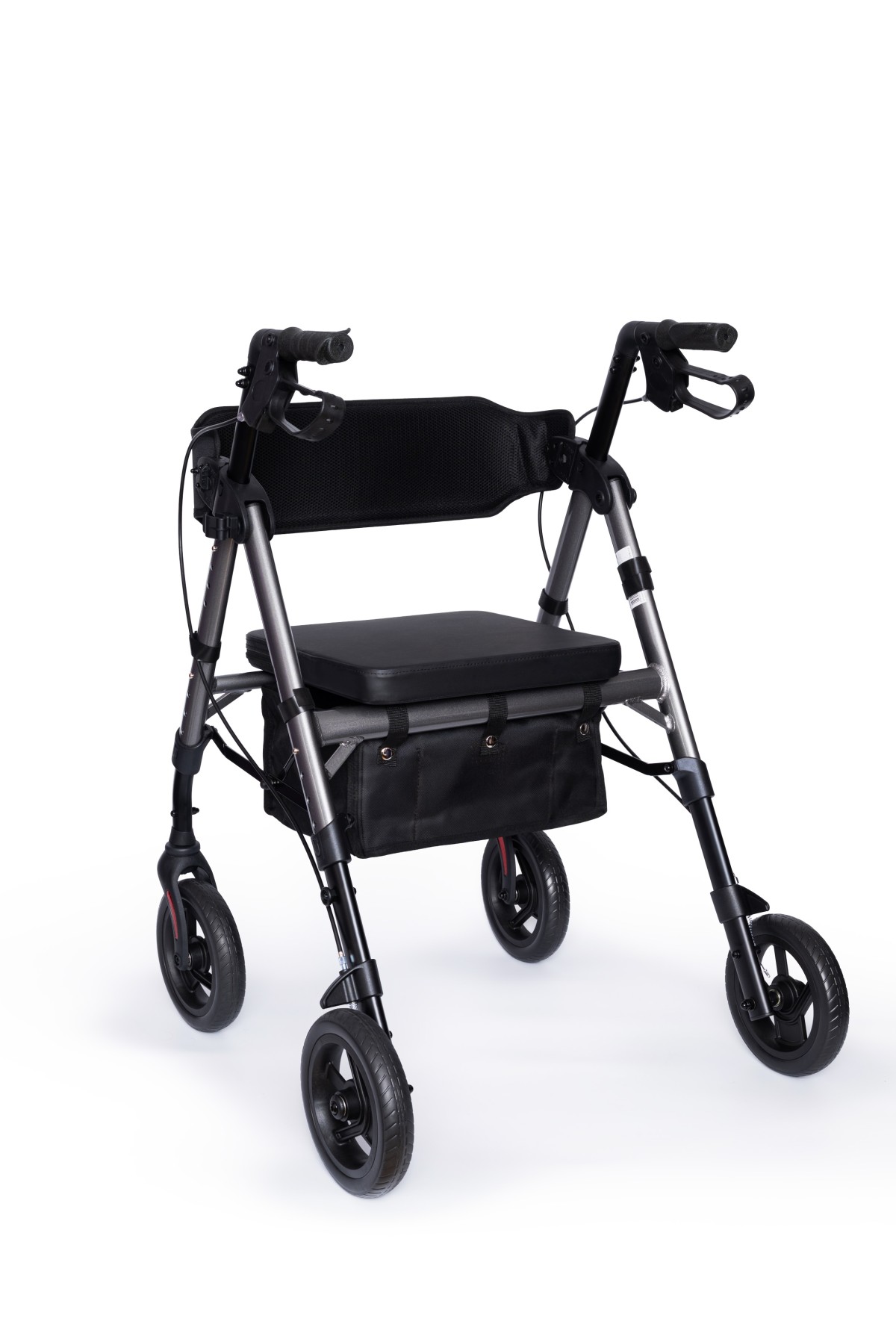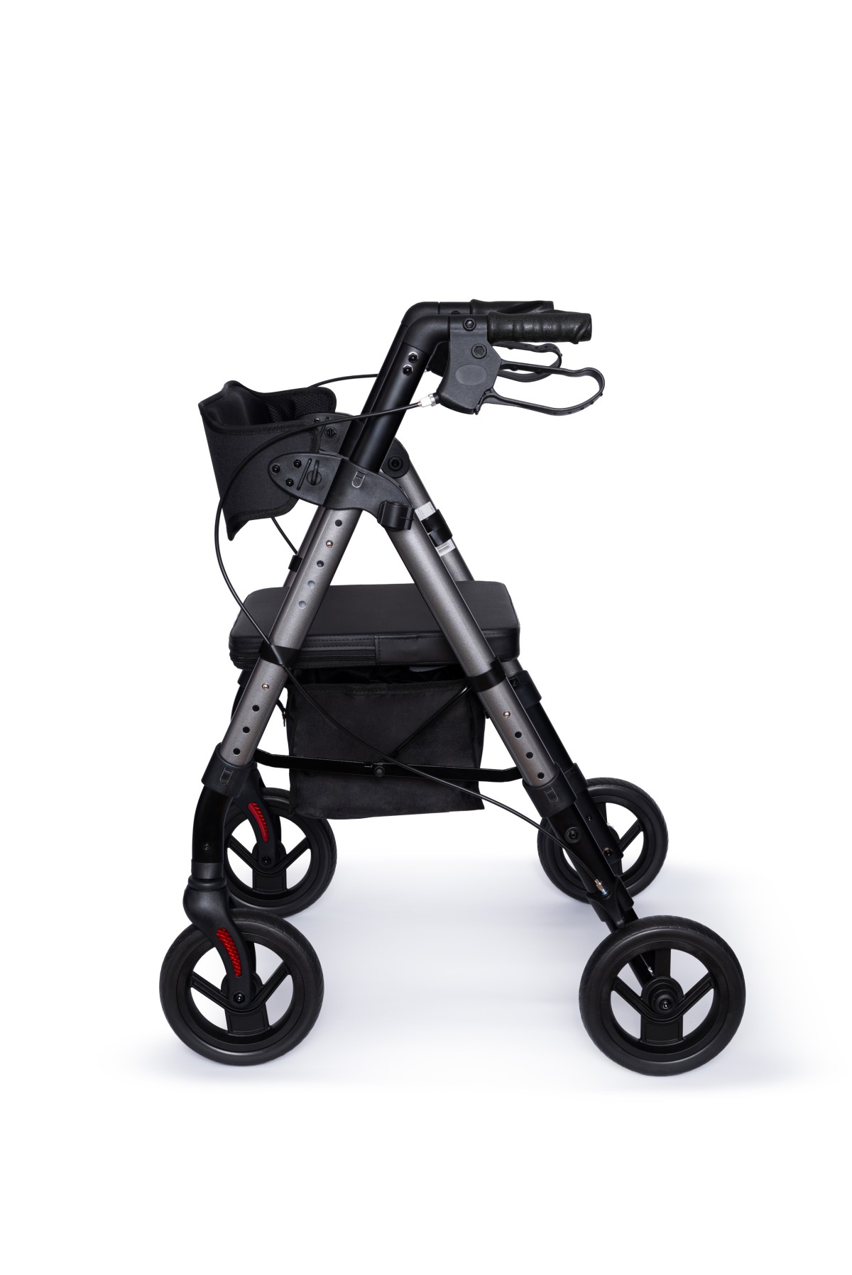 Ši vaikštynė turi lengvą, bet tvirtą aliuminio rėmą, todėl ją lengva valdyti ir transportuoti. Keturi ratai užtikrina sklandų judėjimą, o integruoti stabdžiai leidžia saugiai sustoti ar užfiksuoti vaikštynę atsisėdus.